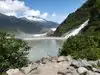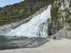 These thundering falls move massive volumes of water by the side of a pebbly, shore. Enjoy the fine mist spray and the view of the glacier!