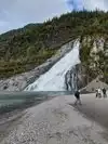 We were on an Alaskan cruise with a large group so we wanted some cool but cost effective things to see while in port. The nugget waterfall and Mendenhall glacier were absolutely amazing and one of our most favorite things of the trip. It is also in the same location as the visitor center and the Mendenhall glacier. From the cruise port, we took a free shuttle to the drop off location which was a bunch of booth vendors selling excursions. They were charging $40 per person to take you to see the glacier (not sure if they allotted enough time to see the falls up close). We walked less than a quarter of a mile to the city bus stop from that point. You can take line 3, 4, or 8 (8 is an express bus that only runs during rush hour times) for $2 a person if 18+ or $1 if under 18. HAVE EXACT CHANGE/CASH. They will not make change for you. We were dropped off at the dredge lake road exit and walked 1.5 miles to the glacier. If you let the drivers know where you are going, they are really good about telling you when to get off. The walk was quick and completely worth it as you see some beautiful scenery and rainforest along the way. There is a $5 per person entry fee to get into the park. It is a short walk to see the glacier with a lookout point where you can get pictures. If you want to continue on, there is a path to the falls with good signage. It is 2 miles round trip to get to the falls. The buses run every 30 minutes. On the way back to the stop, we took the steep creek trail (just the smallest loop which probably added 8 extra minutes (the steep creek trail is a couple of hours if you do the whole thing). Plan on about 5 hours to see the glacier, falls, visitor center, and travel time. We walked around 6 miles total on flat, well maintained paths/roads to do the excursion this way. Totally worth it!