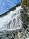 nice and easy hike for older and younger family members. the view was gorgeous at the bottom of the glacier and falls.