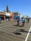 Games of chance, rides and Food Vendors line 14 ocean front blocks along the boardwalk. Then it gets a little less wide and quieter as it passes by motels and residential areas.