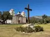 It is a peaceful place, with its old cloister transformed into a garden. The visit is a little expensive ($15) and goes quickly. But the church rebuilt following 2 earthquakes is interesting because the original colors and decorations have been respected. A magnificent tree in the middle of the cemetery, behind the church. Too bad it was gray when we visited.