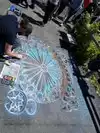 Lots of folks doing chalk art on the ground.