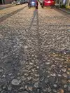 It looks like an old English town with narrow street and decent pedestrian curb.
