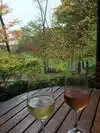 You can get bottle of wine and drink them on the patio. They provide the glasses and you buy the wine and they open it. Great service from the staff. We were able to bring our own cheese platter to eat with the wine.