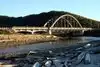 The highway once again turns inland, although the old highway went west out to Charleston, then back to Coos Bay. Coos Bay / North Bend is the largest âmetroâ area along the Oregon coast with a population of about 25,000. I always enjoy the big Coos Bay bridge! (Official name: Conde McCullough Memorial Bridge.)