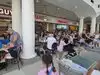 Outside mall which is really, really hot in the middle of August. The food court and all the public spaces were overcrowded, noisy and a bit chaotic. Popular stores were also packed. Suggest that people go in the evening when it is cooler and less crowded. The food court is way overpriced and offers few healthy options. Parking was a disaster with cars going around and around trying to find a space.