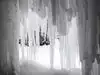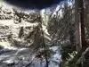 A 1.5 mile winding downhill trail with hard packed snow with no rails. Takes about 20 down. With Small bridges and benches to stop and rest, The views are unbelievable! I would suggest crampons and a walking stick, areas on trail can be icy and with no rails near extremely high and narrow passages it can be scary. The end of the trail was awesome with views of a blue frozen waterfall. Even saw some rick climbers trying to climb it.