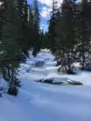 It was slippery so good traction shoes or poles would be beneficial. Moose were bedded down on 2 consecutive days less than 100 feet from the trail. The waterfall was pretty much frozen but the scenery was gorgeous