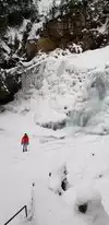 For most people this will be a pretty easy hike of less than a 1 mile each way. The biggest challenge is that it can be slippery in spots. When frozen, you can walk right up to the waterfalls. Very picturesque. With proper climbing gear you climb the falls, but that really does require the right equipment and knowledge. Bring your camera.