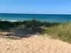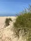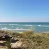Beautiful beach with dunes! We took a picnic and watched swimmers and 2 surfers. Water had white caps.