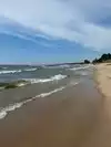 On Lake Michigan, you will find this beach -$10 to park. Don't park where you first enter, there is more parking further into the park and it is closer to the beach. The sand is deep and might be a challenge for some to walk in. Great views from this beach and no rocks in the water to worry about. Restroom facilities and a shower are there for your use.