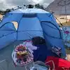 We set up on one of the narrower parts of the beach. The people were lovely and the water was cool. We foolishly forgot to bring water but the concession stand was open serving drinks and food. A really great day.