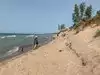 The beach has come back again this year now that the lake levels are receding. There is a steep dune to climb down (the stairs were washed away by the lake previously and not yet rebuilt) and back up so be aware. So beautiful a view though from up high!!!!!!! Lots of beach to walk on. It does get crowded in the summer and if you want to go on the weekend you better get there well before noon or you won't get in until much, much later in the day. All West Michigan beaches fill up fast on the weekends. . . . .the water fluctuates and some days it is clear and beautiful and some it appears cloudy . . .it just depends on how the current is flowing . . .. you can't use your State park pass to get in b/c this is a County park . . . we don't usually go here until after Labor Day when tourists are gone and fees are done for the summer . . . ..