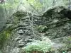 This is a great hike and the trailhead is close to Woodstock. The character of the trail itself is not too exciting, since it follows a dirt road all the way up to the summit. And there's a substantial elevation gain that will have you huffing' and a-puffin'! Not for the out of shape! Once at the summit, you can climb the fire tower and enjoy a 360-degree view of the Catskills, which is truly remarkable. But you really haven't seen the best the mountain has to offer unless you take the little unmarked side trail past the cabin, to a shear ledge called Eagle Cliff (dangerous--keep your kids close to you). Legend has it that a native squaw left a baby unattended here and the child was seized by an eagle and taken aloft. Below the summit at a place called Minister's Face, 7,000 year-old Native American artifacts have been discovered. Allow two to three hours for the hike.