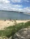 You can walk along the dam to get a very nice view of the lake. Some people were walking down a trail (a little steep) to the lake that had a little sandy area. Free.