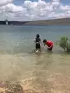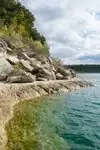 If you walk down the shoreline away from the dam, there are some big boulders about 8 feet above the water that are perfect to jump from if you want some adrenaline. Otherwise, the water is perfect to wade in and I liked playing in the gentle waves as the boats passed by.