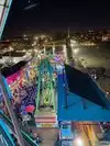 There were still people on the rides at midnight. The arcade was super busy too. The food booths were still selling food but the shops were closed.