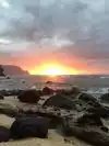 A lovely, coarse sand beach covered by lava rock. Saw lots of little fish and crab. Enjoyed a quiet sunset here.