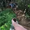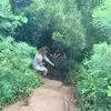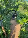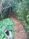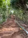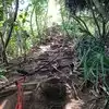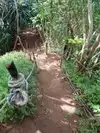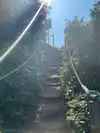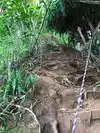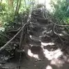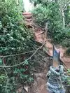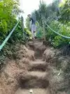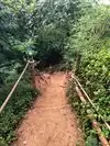 Steep and muddy trail with ropes for safety and support. Not too bad but have hands available.