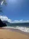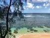 Best condos in Kauai are right above this beach. Puu Poa complex and the best of them all is unit 412. We stayed there and it's amazing!!! Pack a beach chair and some snorkeling gear on your back,walk past PuuPoa condos and the small trail is on your right. Don't sweat the decent down with the help of rope. If your in fair shape you'll do it no problem. Older or unfit folks shouldn't attempt it. Remember whatever you pack down has to come back up. The beach has amazing views of Bali hi and offers some incredible snorkeling with a huge variety of fish and if lucky some big sea turtles. We went here every day and never saw more than 10 people. Use caution and wear a water shoe or sneakers that will get muddy on way up and down. The beach has perfect sand and plenty of shade trees that umbrella the shoreline.