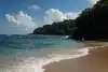 Warning - treacherous path required to reach the beach (slippery, muddy, not maintained). Requires sturdy shoes and 2 free hands to use the ropes provided. Pretty beach with ok snorkeling (tunnels much better). No facilities byo snacks and water.