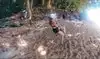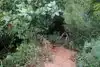 We were too late to get a parking spot on day 1, so we set out before sunrise - just after a rain, on day 2. If arriving when the trail is wet, wear real shoes, pack light, and keep your hands free - if you can use the ropes to "rappel" down, you'll be fine. We had a couple of slips, and the cooler that we dropped at the top rolled all the way to the bottom of the steep descent. When we went back up several hours later, the trail was in MUCH better shape in terms of traction.