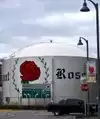 Parkway Bank Park in Rosemont is an entertainment district, that was developed and opened in 2012 as a 200000 square foot (18580 square meters) complex, with various dining and entertainment venues: restaurants with live music, bowling , gaming; comedy club, AMC movie theater, a large lawn used for concerts and festivals in summer, and as a skating rink in winter. At the time of my visit, this lawn was being turned into a skating rink, and some restaurants already started to decorate their outdoor seating areas for winter holidays.