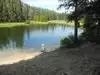 This is a beautiful, accessible lake and not overly crowded. There are spots along the lake where your dog can swim and ours loved it too.