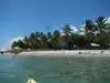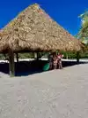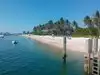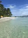 Bring plenty of sunscreen, food and water. The island has nothing but palm trees, sand, surf, birds and green lizards. Boats come in selling pizza and ice-cream. No chair or umbrella service. Snorkeling is good around the rocks and docks. Bring gear or rent before coming. Also you have to pay for a charter ferry or water taxi. The warm clear water was calm and inviting.