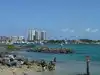 Me and my friends both got bacterial infections swimming here. Granted this all depends on the water movement of the bay, sea ph and so forth. But the public bathroom has its sewage sent to where you swim and I believe that is what happened to us.