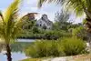 There is a rocked areas surrounded a large lagoon for snorkeling .
