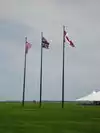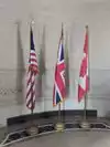 The outside consists of loose rocks and concrete stairs while the structure itself is made up of stone and other materials as well. When you first enter the structure, you are greeted by a wall of messages with various quotes on them as well as three flag stands with the flags of the United Kingdom, United States, and Canada displayed to represent the countries involved in the battle itself. There is also an area there which contains the remains of several American and British soldiers who lost their lives during the battle. There are also several entrances into the structure as well.