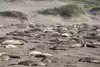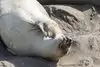 The elephant seals were either playing, sleeping, making fun noises, walking out to sea, or throwing sand on each other.