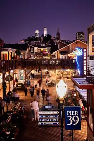 Iconic stroll through the city. Magnet Stores. Very beautiful view of Alactraz. Possibility of taking a short boat trip at bedtime for 20 dollars.