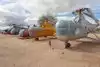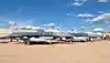 Outside are stacked an incredible array of propeller and jet airplanes including a B 52., helicopters and more.