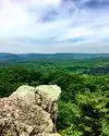 Visited this small state park to do some hiking. We did the Pole Steeple trail. It is a moderate difficulty mostly uphill climb and not too long, only about 1 mile up. It is rocky in most spots, but was not too bad. The pinnacle has absolutely stunning views. The rock formations are a bit tricky to navigate in spots, so check your footing carefully. Great place to have a picnic lunch sitting on the rocks overlooking the small lake and forest terrain. There are a few other trails, that we did not check out, but may return someday.