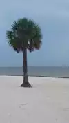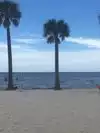 Great little beach. Lots of shade under palm trees or the shelters with picnic tables. There is a place to buy something to eat, and restrooms/changing facilities. Water is clear but greenish in colour due to the nearby reeds etc. Beach is sandy but not manicured like Clearwater. It was just a lovely spot to chill. Very safe for children too as water was shallow for quite a distance, and no real waves to worry about. They can even go looking for crabs! We saw dolphins and a pelican whilst there, and lots of fish when looking over the end of the small wooden dock. Only reason I didn't give it 5 stars was because it took us 2 hours from Kissimmee. Think there are closer beaches. However, if you like it less crowded and less commercial this is definitely a beach worth visiting. Sunsets are wonderful too!