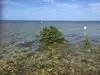 A pretty little spot with white sandy beaches that slide down into a sandy bottom that goes for 50 yards or more at knee depth, depending on the tide.