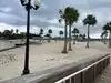 Fairly clean not to over crowded during the week and the morning. Tide was way out so the water was not deep at all. Would,be,a great place for kids. Didn't try the food, but looked and smelled great. Get here early because it will full up quickly. I wish smoking was not allowed at beached at all is my only complaint.