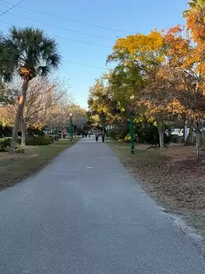 Fantastic bicycle trail, nice scenery, travel through quaint small towns, enjoy a snack or meal at restaurants along the way or at the end of your destination. Stop and chat with other cyclists or locals and enjoy the ride. We rode to Clearwater one day and Tarpon Springs another day. Also strolled along the trail a few times early evening. If you visit on a Friday or Saturday be certain to stop in Dunedin at the Farmers Market. I bought some delicious honey at market.