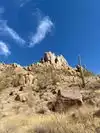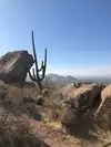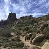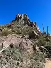 This trail is literally in suburbia, surrounded by homes, and is quite a busy trail. It is nice fairly easy hike. You do not hike to the pinnacle, but skirt past the base of it, then continue on down a neighboring rocky hill overlooking Scottsdale. It is an out and back hike , 1.5 mile, one way, and you can always turn around at the posted high point if you’re not interested in the walking down and then back up the last hill. Note: no dogs allowed.