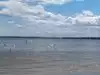 Even though it was too cold and windy for swimming the life guards were there to take care of the area. It faces south so there is great sun when not covered by clouds. The picnic areas and bathrooms are very clean and in great shape. The grill we used was a bit worn out, but it worked fine. I guess the walk out to the one point is to a haunted spot where the foundation is left from a house where they supposedly burned a house down with a group of sisters inside, I guess they were witches. So I didn't check it out, but that's what the locals claim!