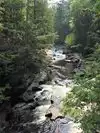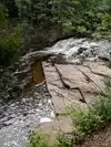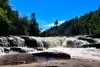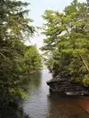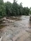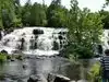 Presque Isle Scenic area. 1.9 mile one way to see 3 waterfalls. There's 3 parking lots. The lot across from the fee booth is for the barrier free Nawadaha Falls. The other 2 require a boardwalk trail with many stairs. You can make a loop by taking the trail on the other side of the river - 2.3 mile loop. There's 2 other parking lots that are larger.