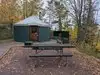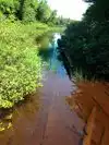 The trail from the parking lot to the yurt is closer to a mile in length, with lots of narrow wood plank sections. However, the road beside the outhouse leads straight out to the road and is much less of a trek. To get to the yurt this way, turn right out of the parking lot and walk about a quarter mile down the road to the SECOND green gate on the north side of the road. There's nothing much to see other than the creek but being alone in the middle of a huge forest is very tranquil and soothing. The mosquitoes are vicious. Bring some of those green coils with you. Family Dollar in Ontonagon has them, four coils for a dollar. Don't use the yellow bug spray in the food box, as the label says not for use on humans. It's only for clothes.