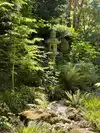 This hillside garden was the perfect getaway for peace and quiet. The sounds of the water features permeate the air, and you cannot help but feel the calm. Beautifully shady, moss everywhere, wonderfully designed.