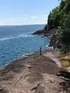 Be sure to take the 3.1 mile drive around the loop of this isle. Be sure to look for the quick right turn off as you descend the hill a short distance away. You will find off to the right the cliffs where the young people jump off the cliffs into the cold water. Then continue past the parking lot off to the left to climb the black rocks both attractive and unique to reach the area where the kids jump off. The whole is scenic as you drive around.Also, you can do some hiking