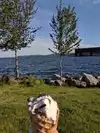The isle has spots to picnic as we as a large shelter complete with restrooms, tables and fire pit. There is also a nearby ice cream shack.
