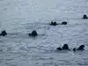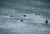 We were on a fishing trip, and saw 8 whales bubble feeding. They all came up together to feed twice while we were watching and then slowly dove down, with their tails arching one by one. What an amazing and beautiful sight
