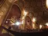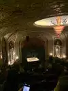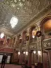 Stunning theater artfully decorated with intricate gold leaf details throughout the ceilings and walls. Not a bad seat in the house.