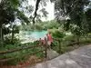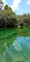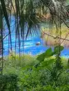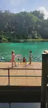 Beautiful clear cold water surrounded by lush green tropical foliage. Not super crowded and just good family fun. Beautiful lush trails to a short hike to a small waterfall . Very relaxed and chill.